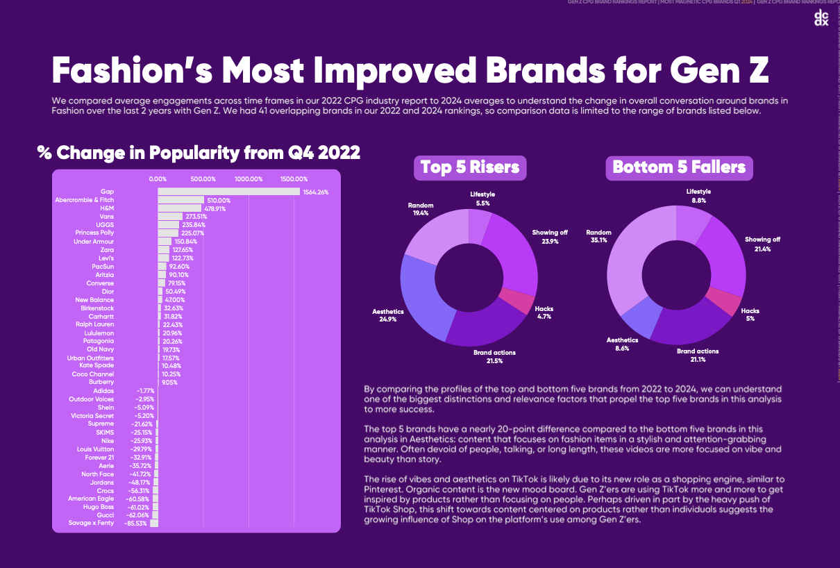 Gap and Abercrombie & Fitch lead the list of Gen Z’s Most Improved Brands in Q2 2024, while Nike, Crocs and luxury take big hits.